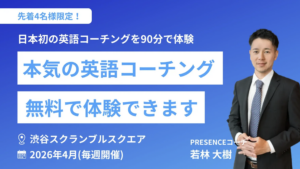 当社が運営する日本初の英語コーチングスクールプレゼンスでは、無料体験セミナーを開催いたします。